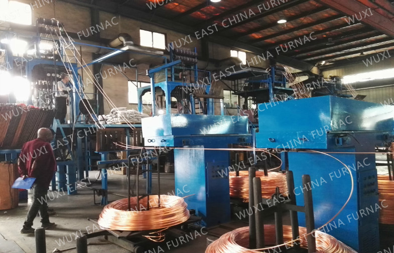 La placa de cobre electrolítica (99,9% pedazos de cobre) se une a en los hornos fusorios a través del dispositivo de carga (según las necesidades de usuario), (si las materias primas no son el cobre rojo 1#, nuestra compañía puede diseñar e instalar el horno de reverbero antes de hornos fusorios para quitar la impureza de cobre). La placa de cobre a través del W-tipo inductor en líquido, entonces fluye suavemente del almacén de la transición al horno que se sostiene, y después está en el proceso constante de la reducción a través de la superficie cubierta con carbón de leña, en el último es cristalizada rápidamente a la barra del cobre del molde por el crystallizerof la planta de la ventilación por proceso de cobre ascendente de la barra al mismo tiempo, molde que la barra de cobre hacia arriba casted intermitentemente a través del rodillo de la tracción dos. La barra del cobre del molde a través de la máquina de acarreo, y el wheelframe, la velocidad que ajusta el engranaje, entonces a la máquina de bobina automática para enrollar la barra de cobre.